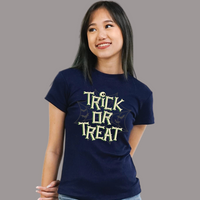 Fun “Trick or Treat” design with pumpkins, ghosts, and candy