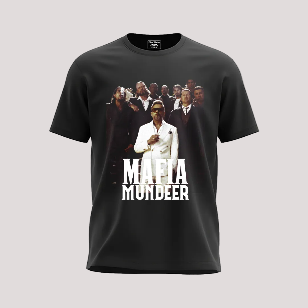 Bold “Mafia Mundeer” graphic print inspired by the iconic Desi hip-hop collective