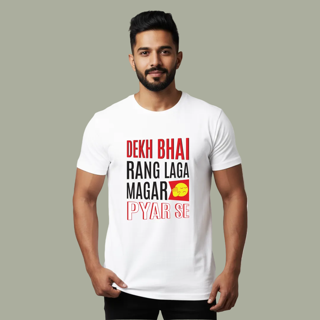 Dekh Bhai – Funny Holi T-Shirt | White Cotton Unisex Festive Tee