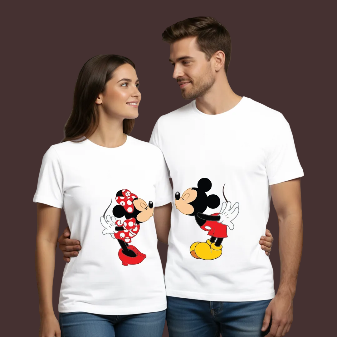 Disney Mickey & Minnie Mouse Kissing Couples T-Shirts – Matching Valentine’s Day Tees for Him & Her | White Cotton Graphic Tees
