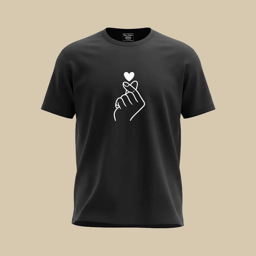 Korean Finger Heart Matching Couple T-Shirts – Valentine’s Day Gift | Minimalist “Saranghae” K-Pop Tees