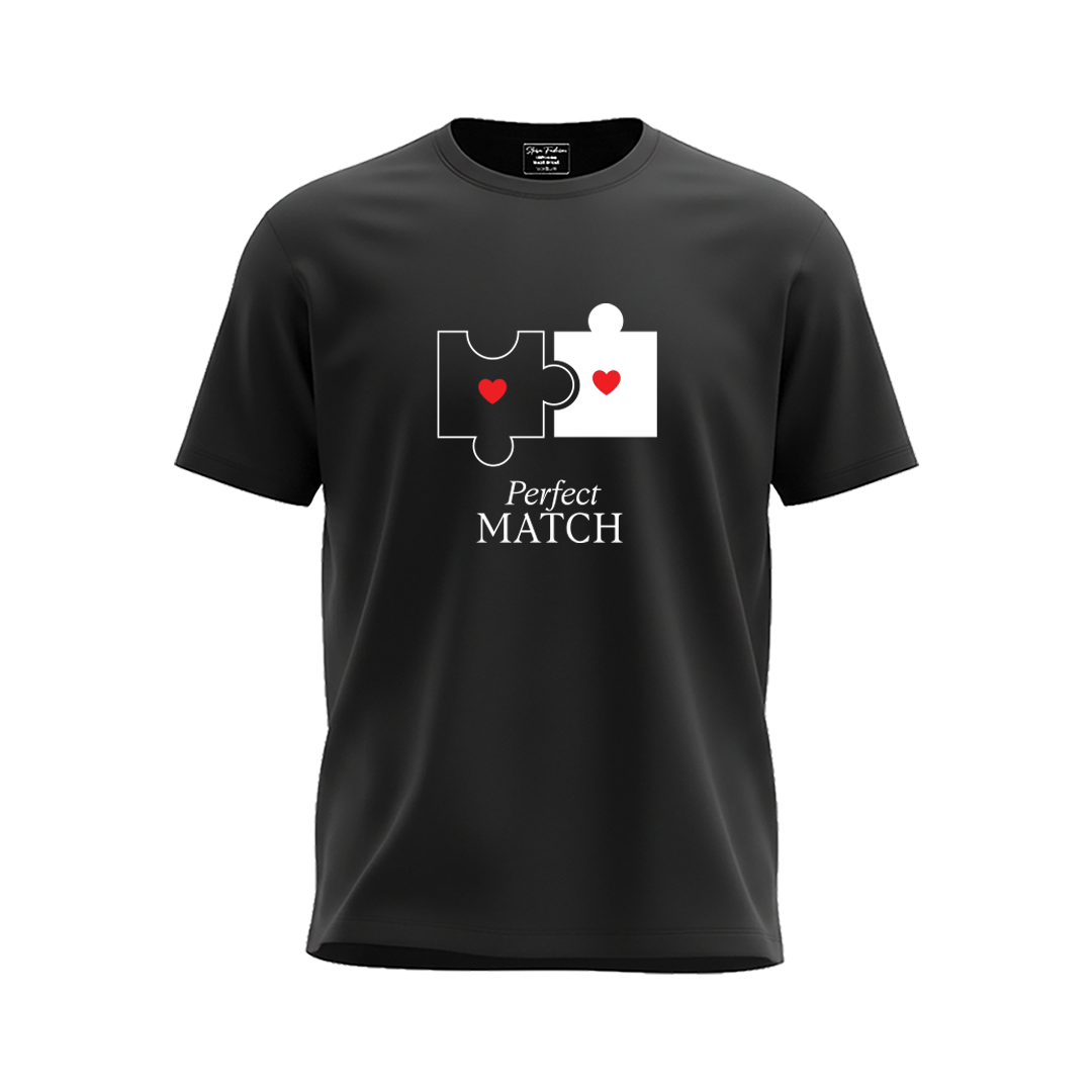 Valentine’s Day Matching Couple T-Shirts – "Perfect Match" Jigsaw Puzzle Graphic Tees | Cotton Tees for Lovers & Married Couples