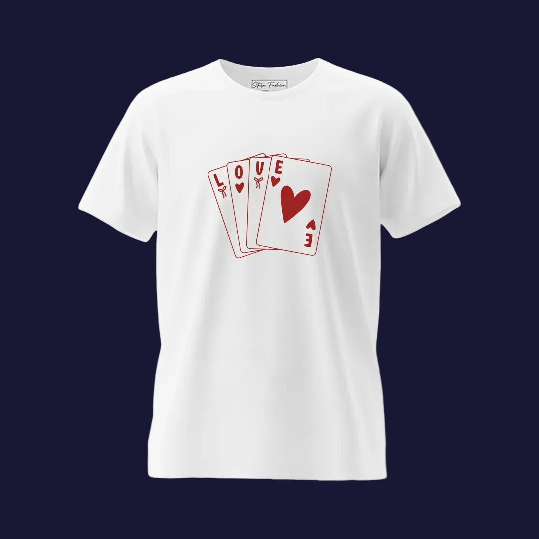 Deal the perfect hand of love this Valentine’s Day with our Matching Couple T-Shirts featuring a Love Playing Card graphic. Designed to symbolize luck, romance, and togetherness, these white cotton tees are perfect for couples who believe love is the ultimate winning card.
